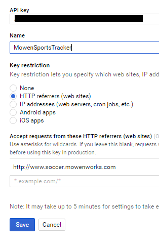 You have now created a Google Sheets API key. The sports stats with Google Spreadsheets data will have much tighter access control.